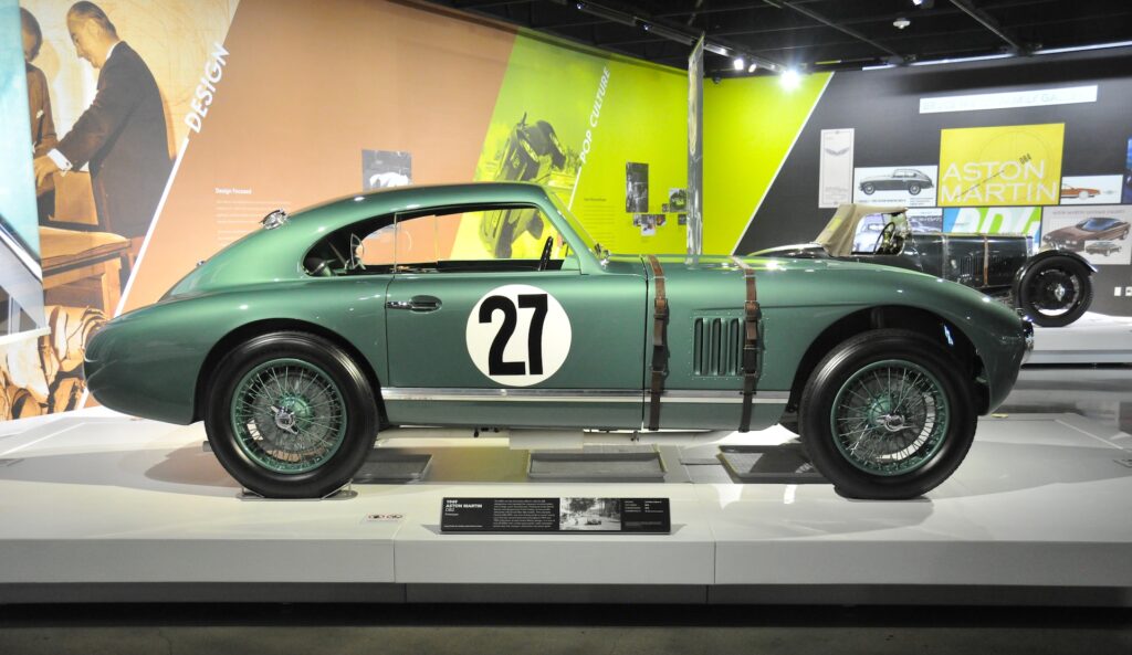 Next, we have the 1949 DB2, so named after David Brown, who bought Aston Martin out of bankruptcy in 1947 for a mere 20,000 pounds. As you might expect, the DB2 was the first of many Aston’s over the next eighty years that would use his initials to designate the brand’s models. This particular car is one of three prototypes that were used for racing, securing a class podium at the 24 Hours of LeMans. Production models of the DB2 produced 105 HP and a top speed of 110 MPH. 299 DB2’s were built along with 102 Drophead Coupes (that’s British for convertible).
