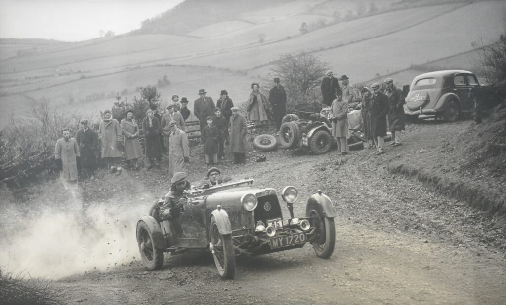 First, is the 1929 Sports Model, nicknamed the Feltham Flyer, and also known as the S-Type. With 56 HP and a top speed of 81 MPH, it was first displayed at the 1928 Olympia Show. Only six of these cars were built, but with modifications to the chassis and running gear it became the much better selling International model from 1929 to 1931. Below is a period photo probably from around 1939, of the Feltham Flyer participating in a hillclimb, which were popular races during that time.
