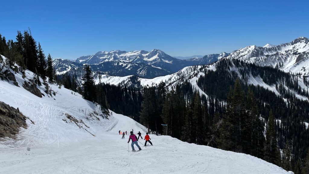 Spring skiing also highlights Brighton’s shortcomings on chair lift placement. There are too many flats between lifts, typically requiring too much poling on wet spring snow this time of year. And, I find there’s too much cat track skiing to make one’s way from one end of the area to the other. It’s not easy to get around, and it’s boring skiing.
