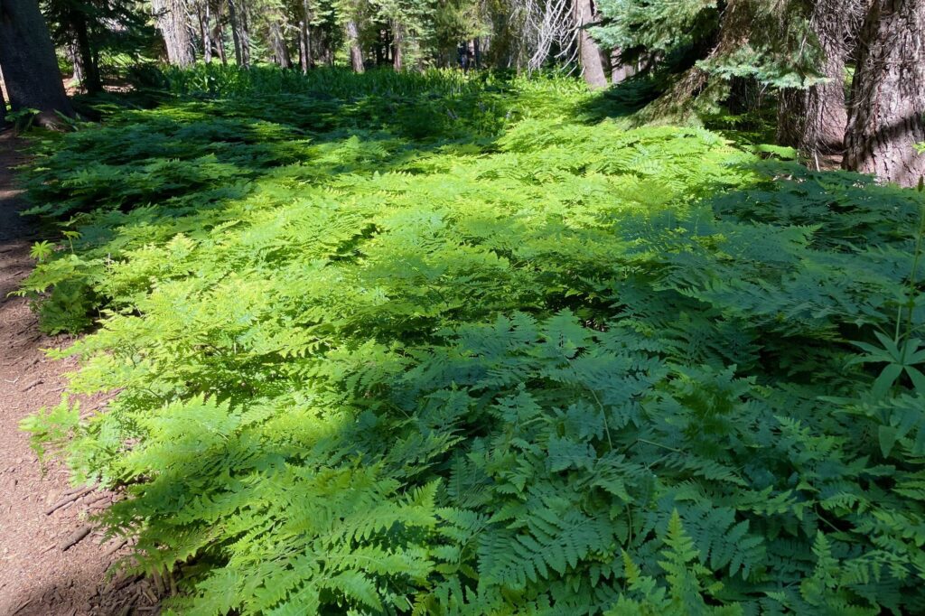Left – Yosemite Valley (and our cabin) 3,214 feet directly below; Right – Ferns along the trail to Taft Point