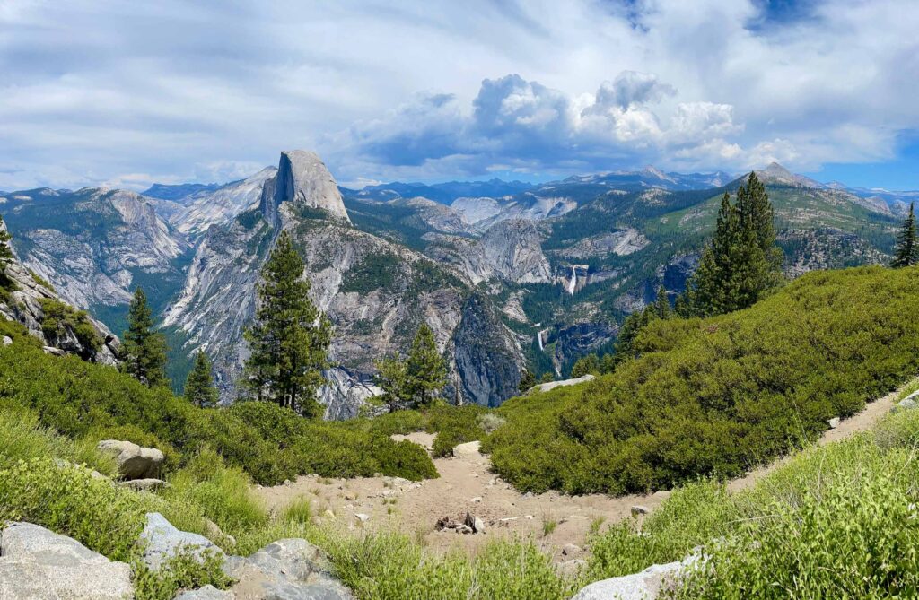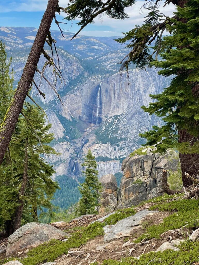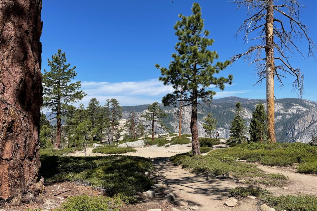 Left – Approaching Taft Pt; Right – View of Yosemite Falls along the Pohono Trail.